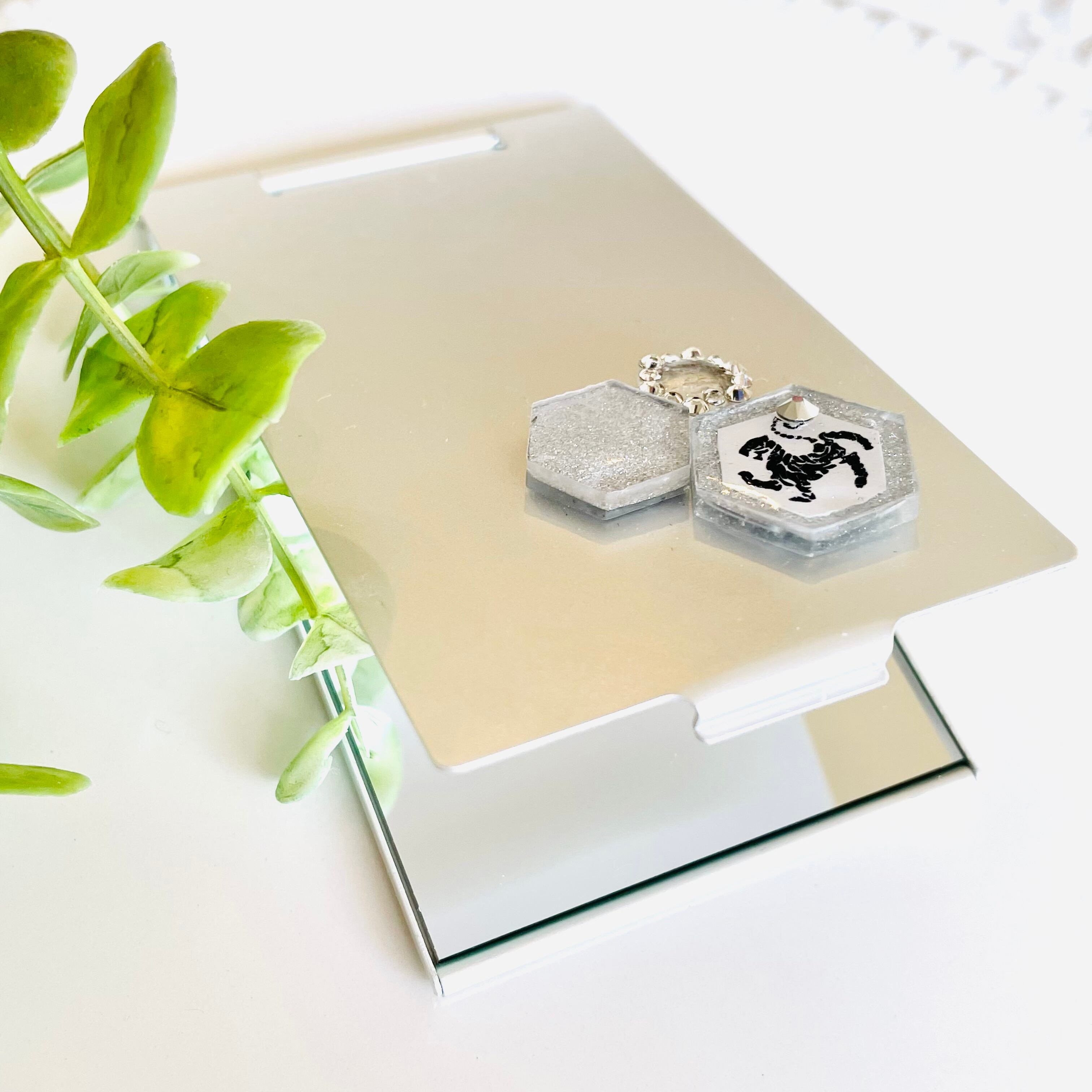 シルバーの虎の飾りを付けたミラーを作りました。