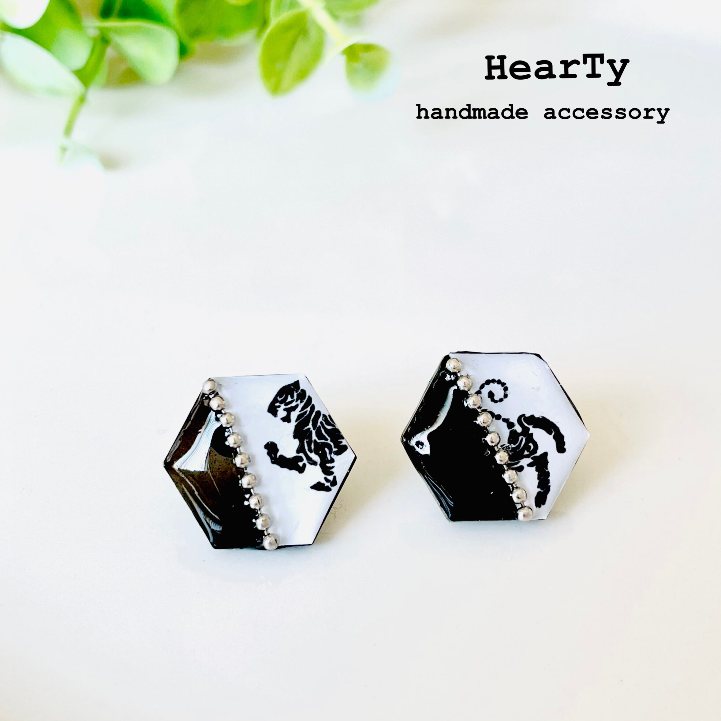 hexagon tiger モノトーン ツートンカラー 六角形 ピアス 空手 寅 トラ