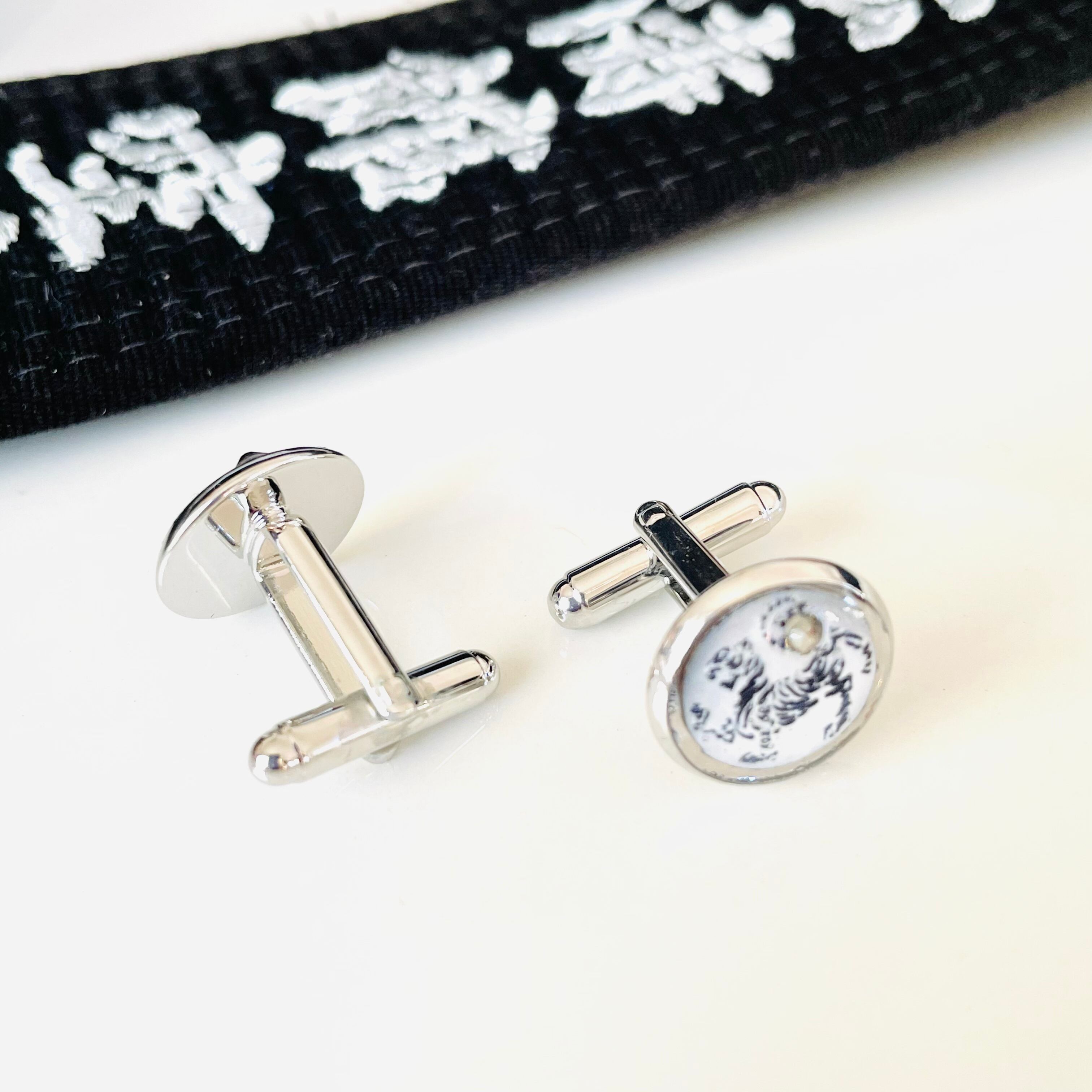 シルバーのカフスにメタリックの虎をレジンで固め、上に一粒のブラックダイヤモンドのスワロフスキーを乗せました。