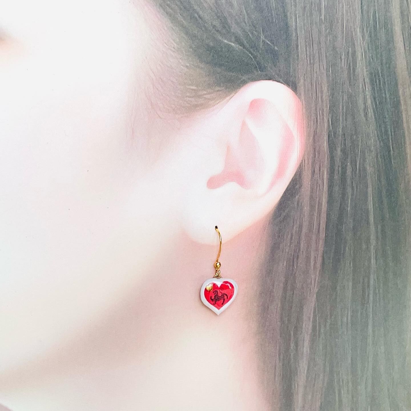 赤いハートの中に黒い虎を閉じ込めたかわいいフックピアスです。