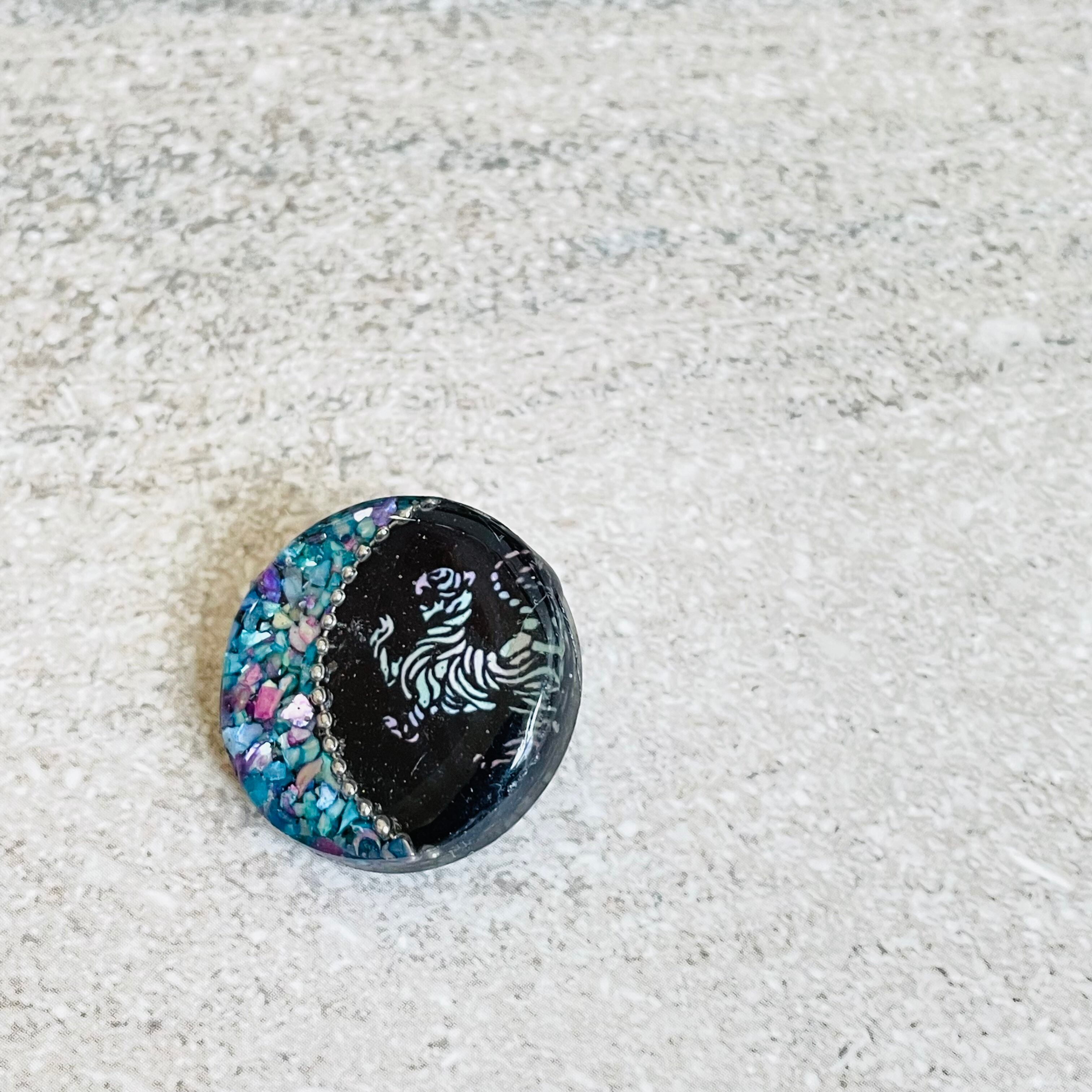 オーロラカラーの虎にシェルの色を合わせ、三日月型にデザインしました。