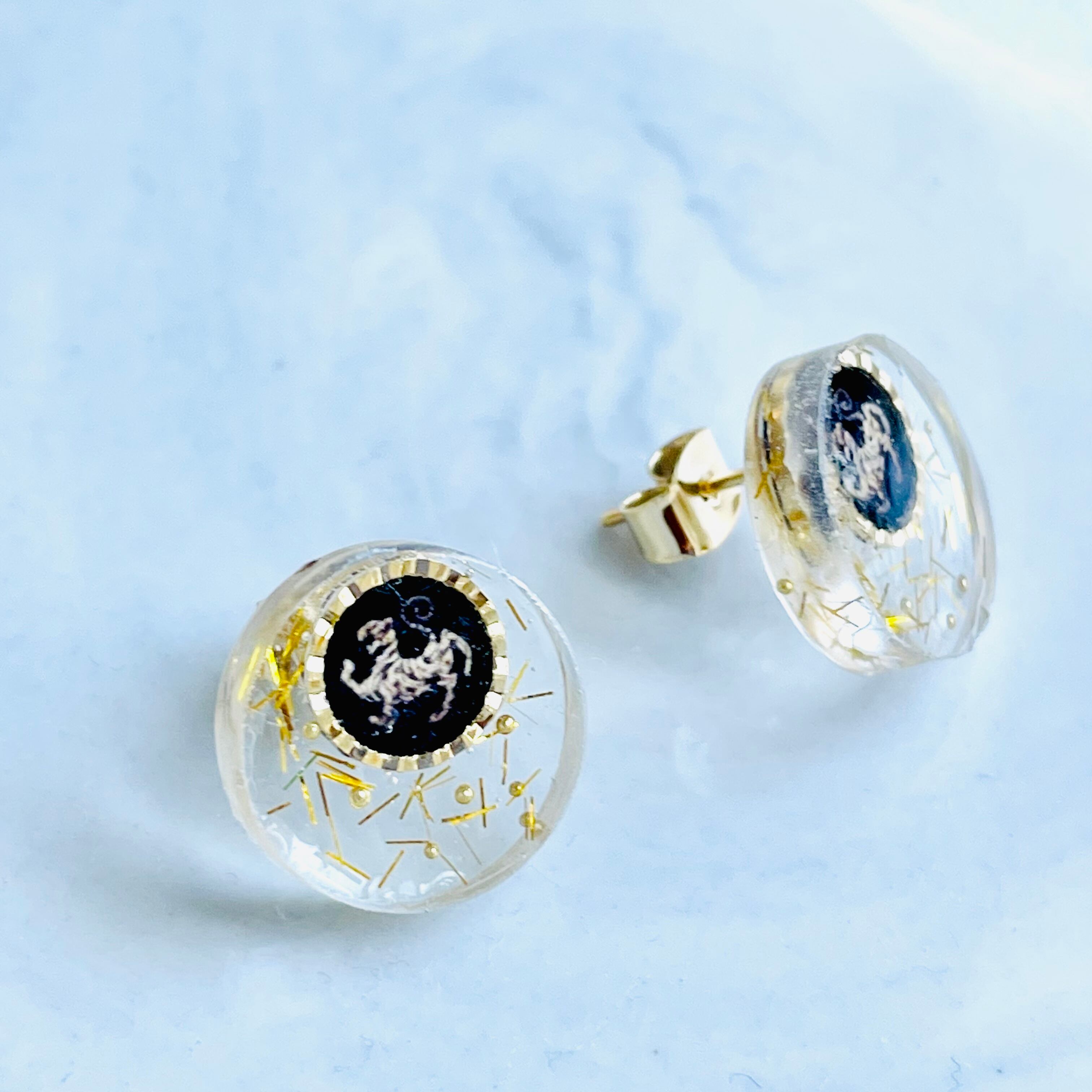 ゴールドのパーツを入れた透明なレジンの上に、
