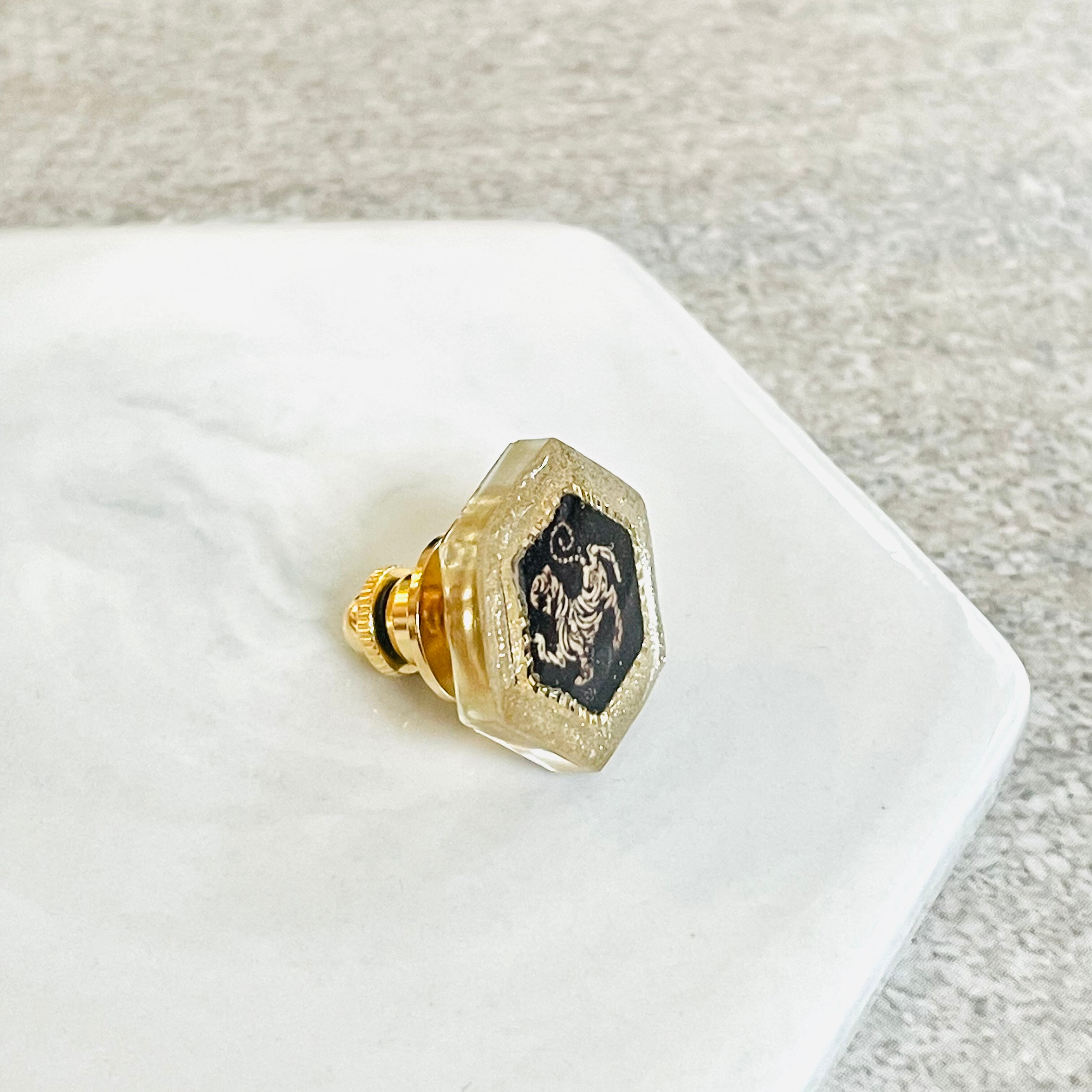 タックピン ピン バッチ 六角形 シェル レジン 空手 寅 ゴールド