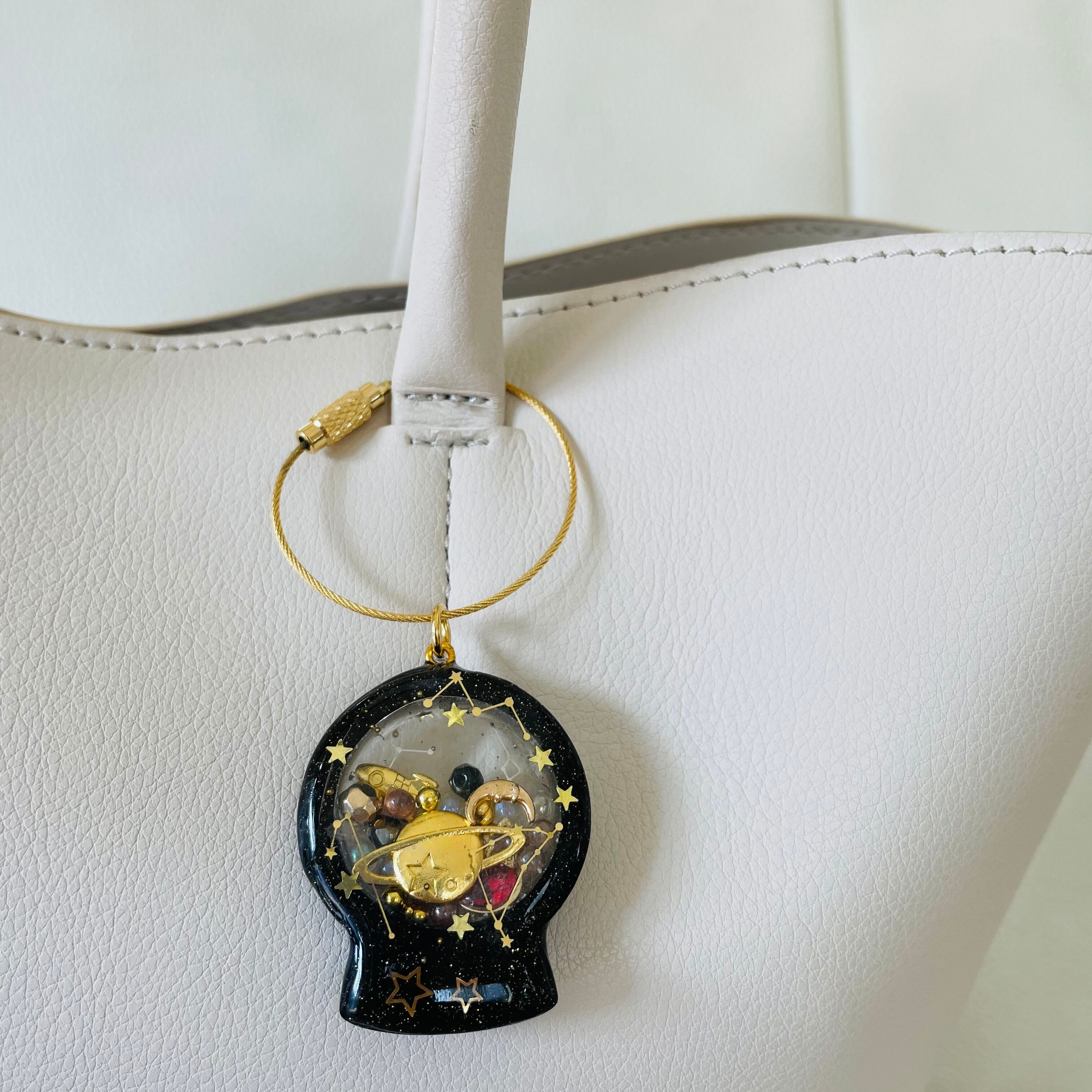 シャカシャカストラップの中に虎や宇宙を閉じ込めました。
