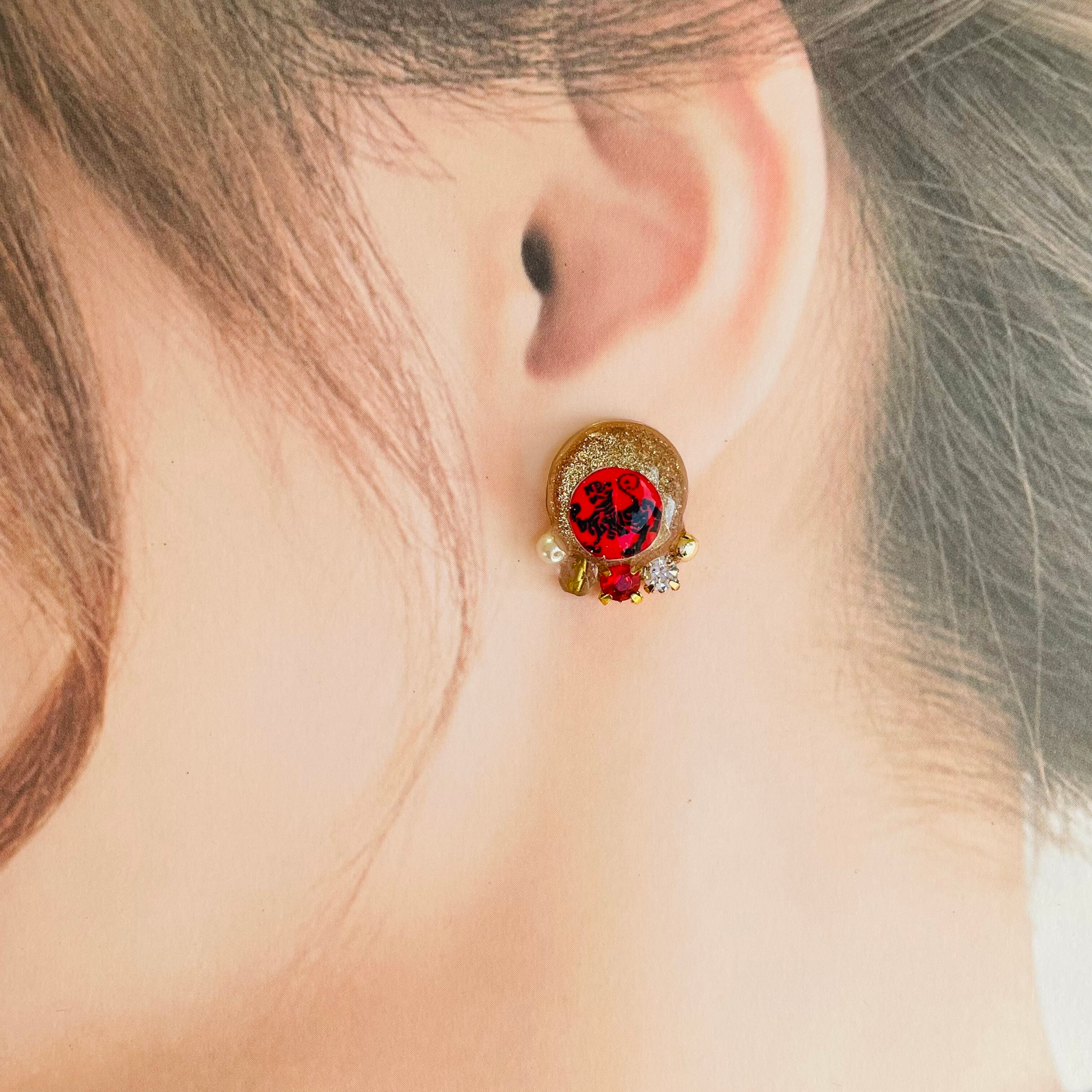 Christmas earrings tiger クリスマス ピアス 虎