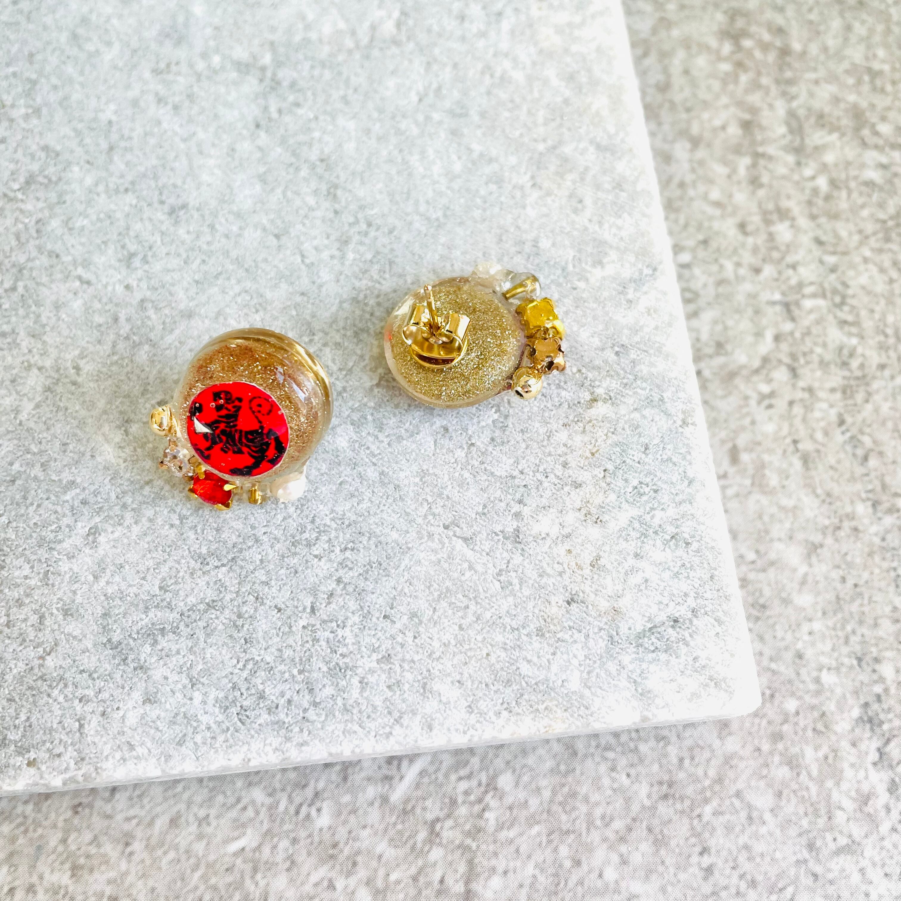 レジンでレッド&ゴールドのクリスマスカラーのピアスを作りました。