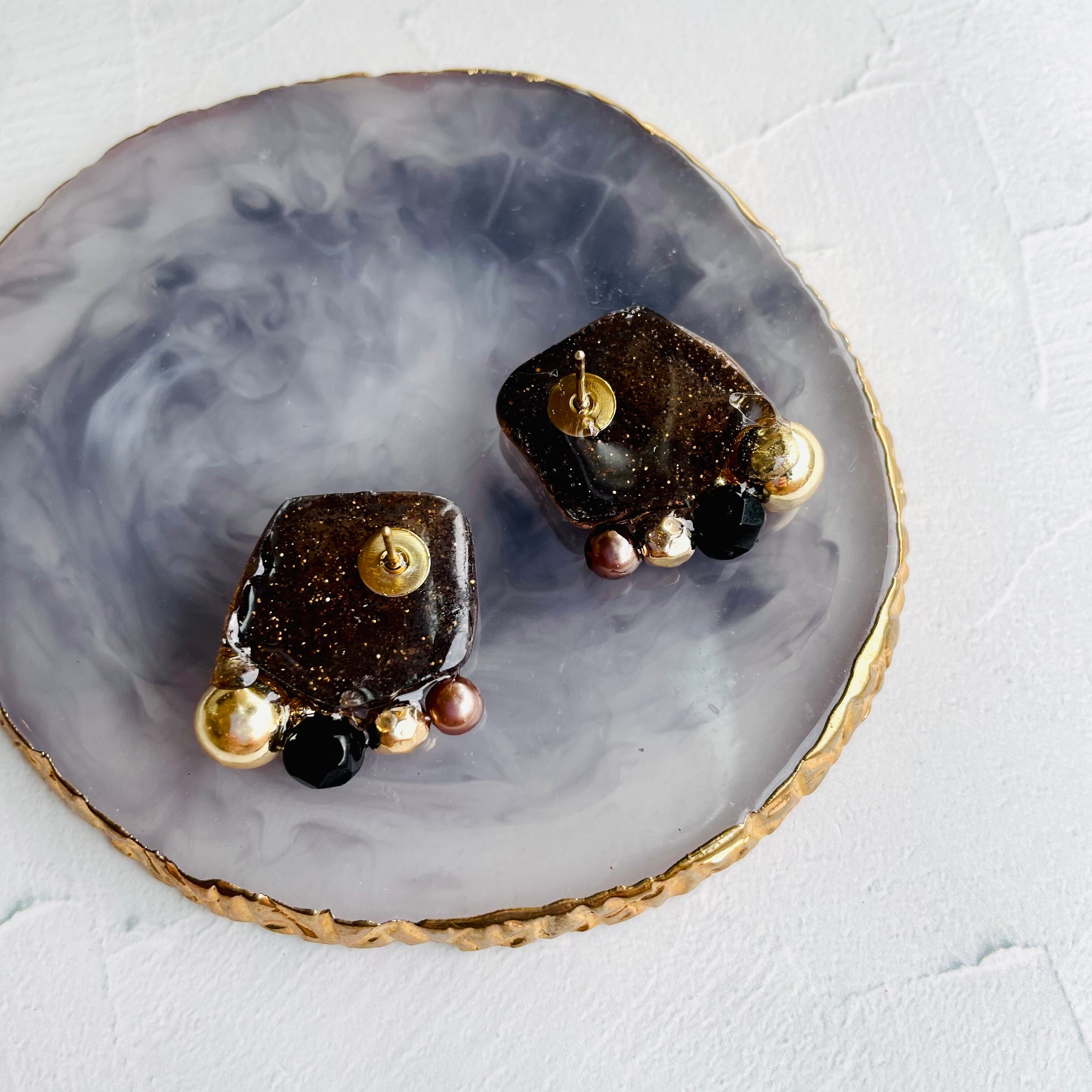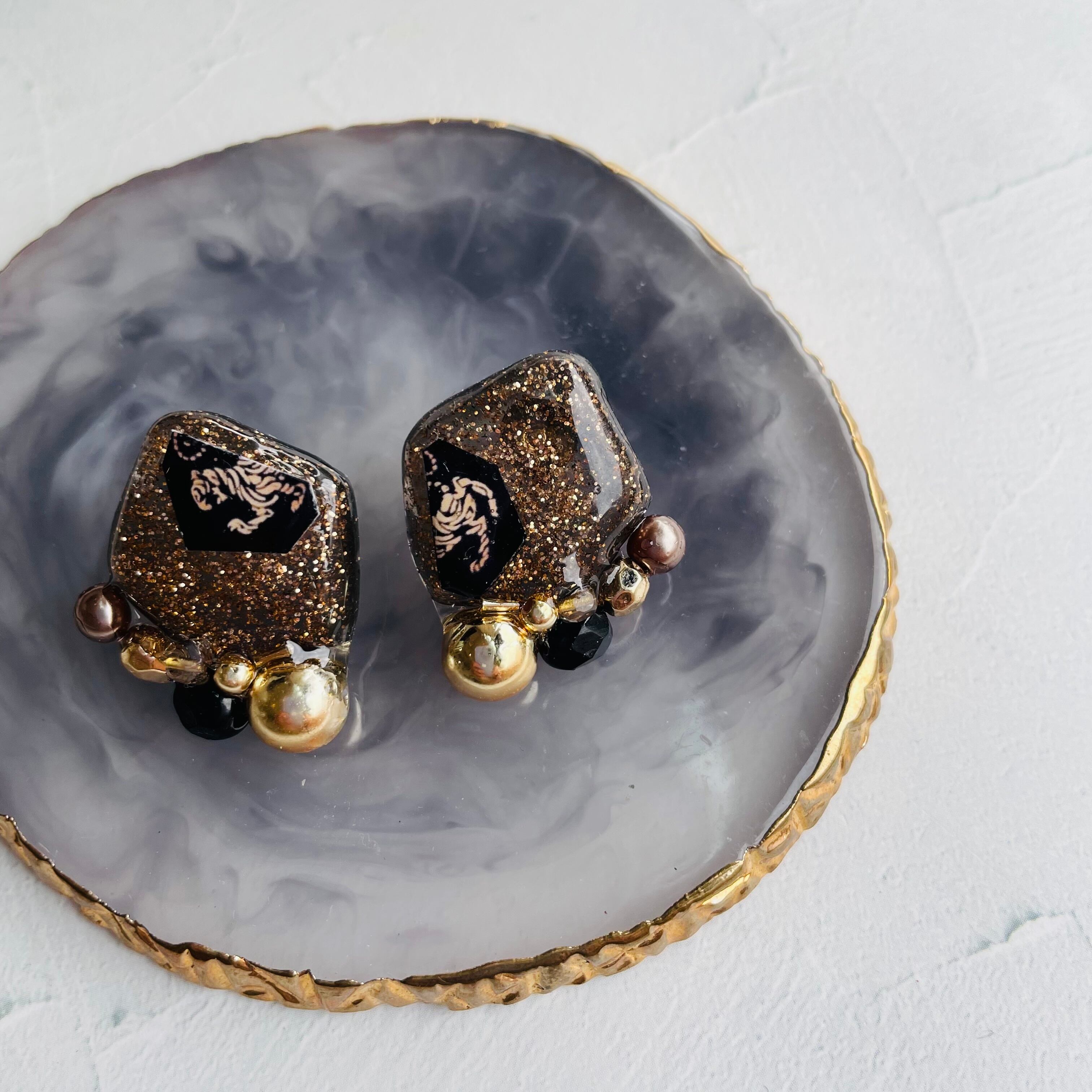 ブラックのレジンにゴールドのラメを入れ